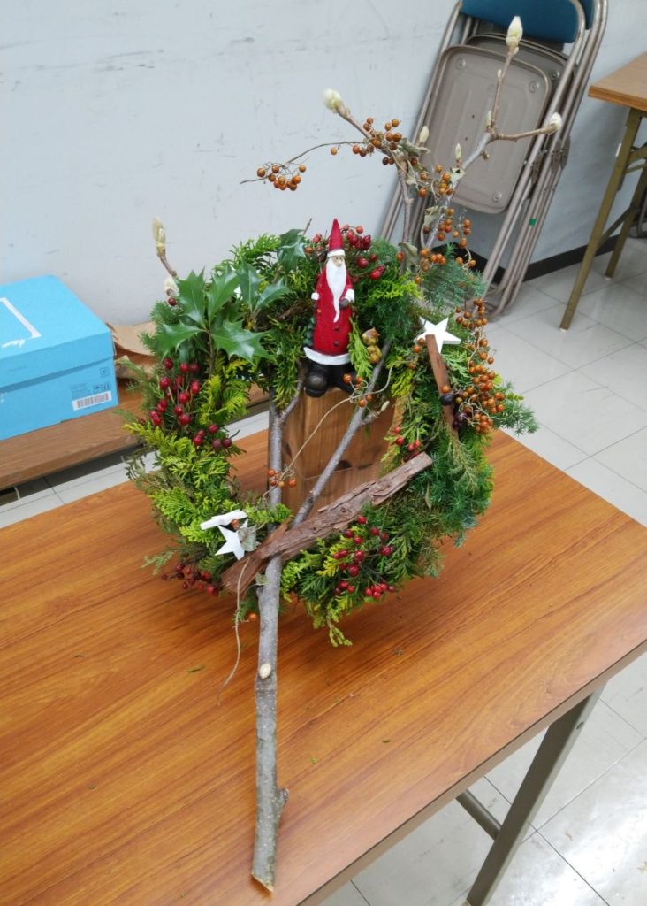 大人クリスマスの演出用にリースとフラワーアレンジメントの実技研修です。