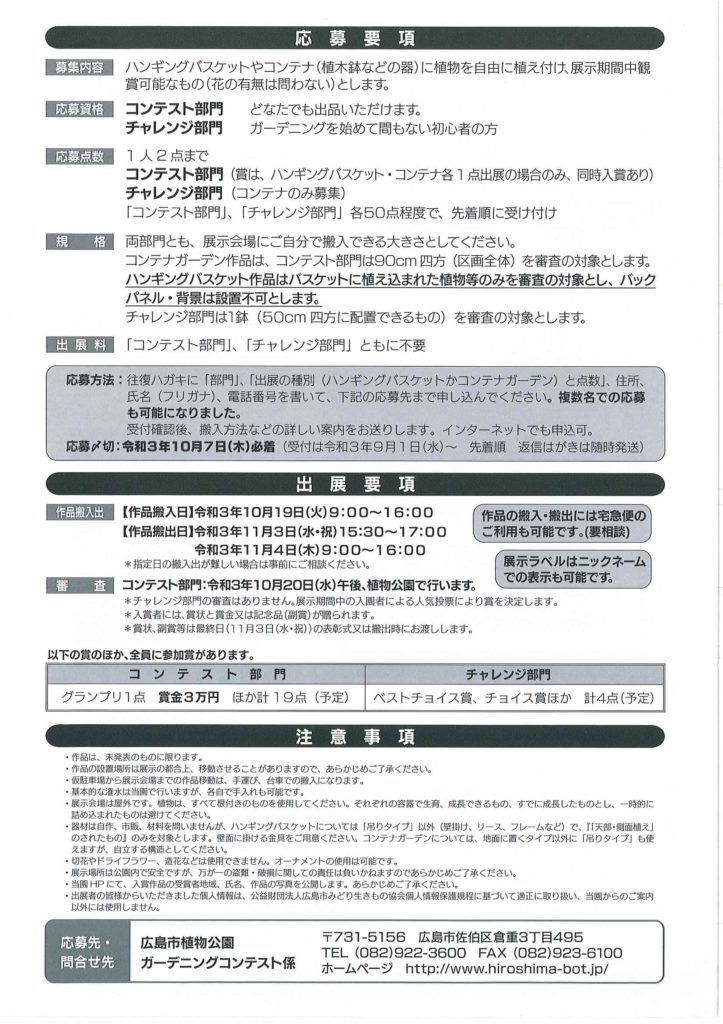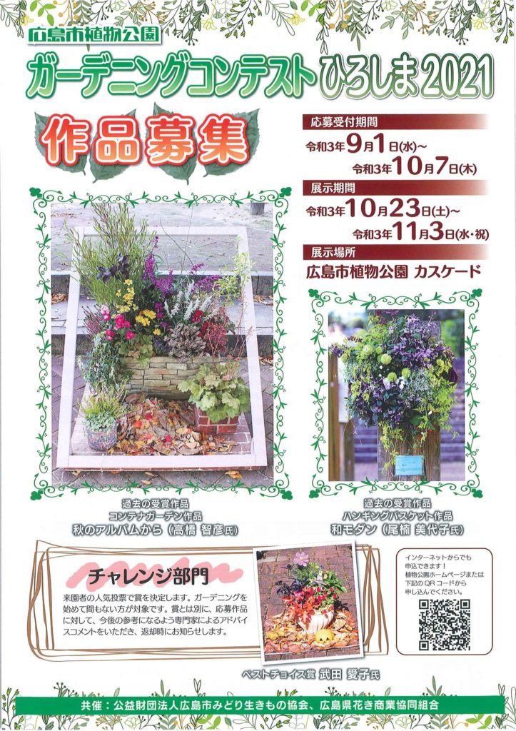 広島市植物公園のガーデニングコンテストひろしまが今年も開催されます。